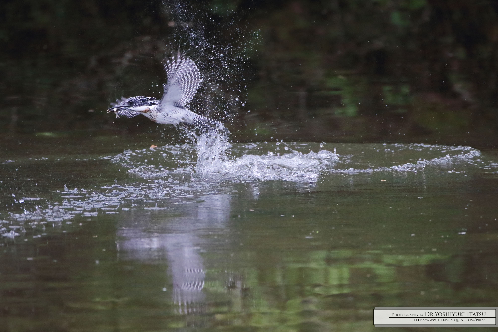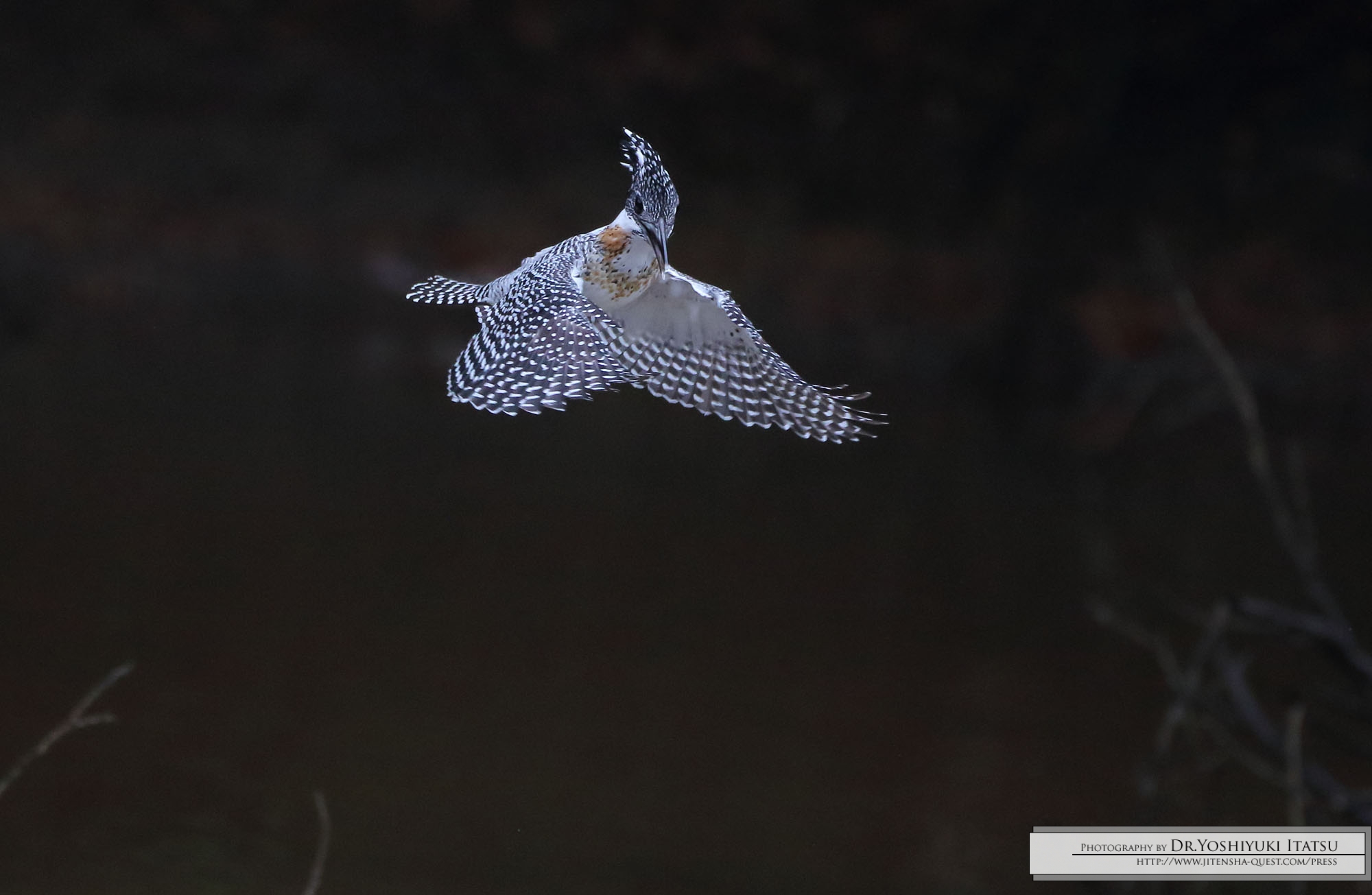 魚をねらってホバリングするヤマセミ
