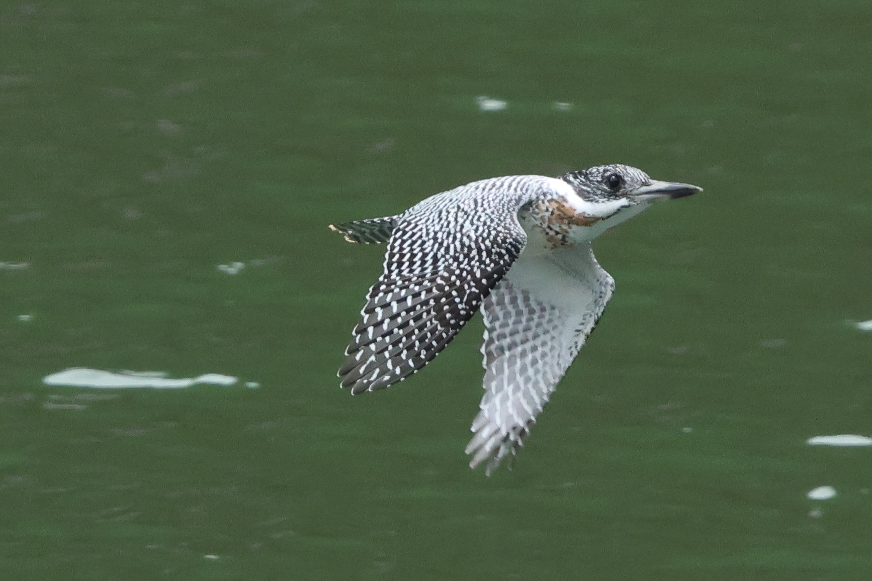 白と黒のまだら模様(市松模様)のヤマセミは魅力いっぱいで大好きですが、矢作川では数がどんどん減って心配です。気候や環境の変動が影響しているのでしょうか。こどもの姿がありません。仕方なく新城とか奈良とかにも足を運んでいます。胸にうすい茶色は雄です。
